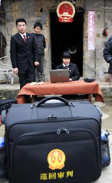一個國徽包,一個多功能拉桿背包,一個一體機拉桿箱組成的便攜式“巡回審判箱包”開啟便民訴訟的新時代。據(jù)了解,根據(jù)大城市帶大農(nóng)村、大庫區(qū)的市情實際,為把重慶建成“打官司最便宜、最公正、最有效的地方”。2011年12月22日由重慶市高級法院研發(fā),并擁有自主知識產(chǎn)權(quán)的便攜式巡回審判箱正式啟用,它將配發(fā)給該市124個基層派出法庭。全市法院在廣泛實施推行便民訴訟、大力強調(diào)巡回審判的基礎(chǔ)上,組織人員研發(fā)了這套“流動的”審判工作系統(tǒng)。
