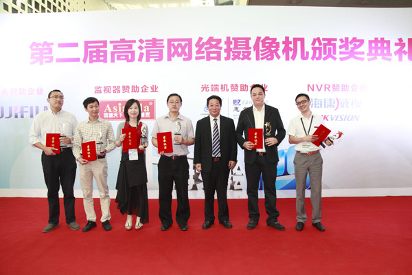 同時,為進一步提升攝像機生產(chǎn)企業(yè)的品牌知名度和市場競爭力,組委會聯(lián)合上海市公安局技術防范辦公室開展了“第二屆高清網(wǎng)絡攝像機評優(yōu)活動”。5月22日上午,上海安博會第二屆高清網(wǎng)絡攝像機評優(yōu)頒獎典禮在上海世博展覽館中廳舉行,來自10家企業(yè)的14家品牌經(jīng)過兩天的現(xiàn)場PK,展現(xiàn)各自產(chǎn)品優(yōu)勢,各項參數(shù)比拼激烈,難分伯仲,最終分別摘得金視獎和銀視獎。本次攝像機評優(yōu)活動共有10家公司14只攝像機參加,攝像機參評規(guī)格和種類為1080P彩色網(wǎng)絡型數(shù)字槍式攝像機。其中普通攝像機6只,低照度攝像機8只。經(jīng)過在展會現(xiàn)場搭建實際環(huán)境,普通攝像機觀看展館外人流情況,觀測出入口人流情況;低照度攝像機觀測暗箱內(nèi)動態(tài)、靜態(tài)公仔擺設是否有掉幀、抖動的情況,最終以清晰度、色彩還原性、運動圖像效果綜合評定投票。兩天時間內(nèi)技防專家共計投票163票,觀眾共計投票525票,經(jīng)過統(tǒng)計評選出了“上海美贊美數(shù)碼科技有限公司”、“上海沃塔數(shù)碼科技有限公司”、“上海帥立科技有限公司”、“杭州海康威視數(shù)字技術股份有限公司” 等分別榮獲普通攝像機和低照度攝像機“金視獎”。“松下電器(中國)有限公司系統(tǒng)通信營銷公司”、“蘇州科達科技有限公司”、“上海全景數(shù)字技術有限公司”、“上海三星商業(yè)設備有限公司”、“上海全景數(shù)字技術有限公司”、“浙江大華技術股份有限公司”、“金三立視頻科技(深圳)有限公司”、“浙江宇視科技有限公司”等分別榮獲普通攝像機和低照度攝像機“銀視獎”。