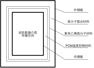 5.6.防護(hù)柜整體物理結(jié)構(gòu)采用柜體內(nèi)鋼板、兩種或兩種以上不同類型耐火溫控材料、外鋼板等組成時(shí),柜體結(jié)構(gòu)示例如圖: